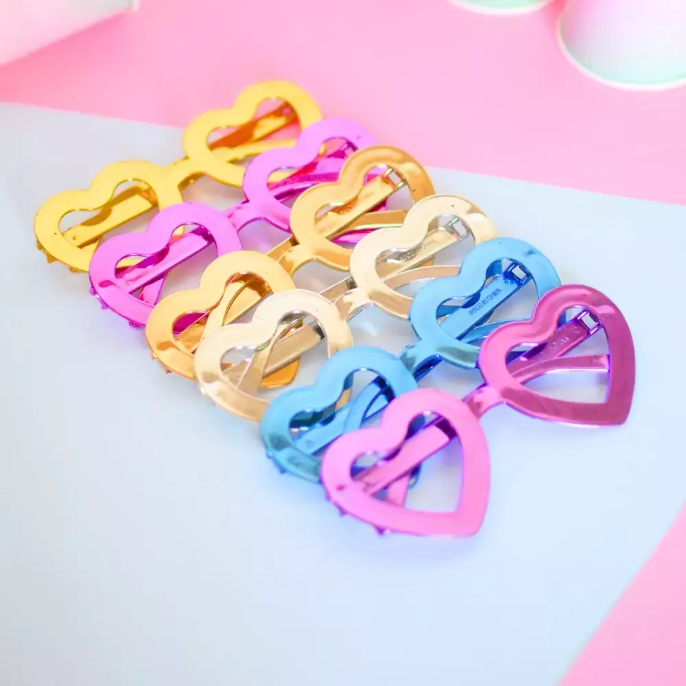 Anteojos plásticos metalizados "CORAZÓN" x 12un en colores surtidos 🕶️ Los más buscados para todo tipo de eventos🎉 ¡Sumalos a tu catálogo y atraé más clientes!