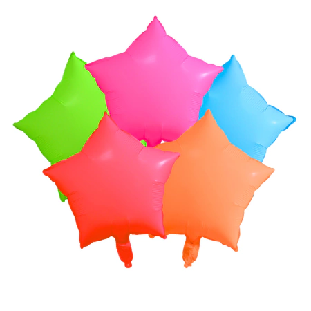 GLOBOS ESTRELLA EN COLORES FLÚO. VIENEN 5 UNIDADES POR PAQUETE