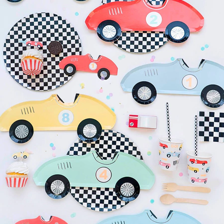 PLATOS DE EN FORMA DE AUTITOS VINTAGE. MATERIAL: POLIPAPEL. VIENEN 10 UNIDADES.