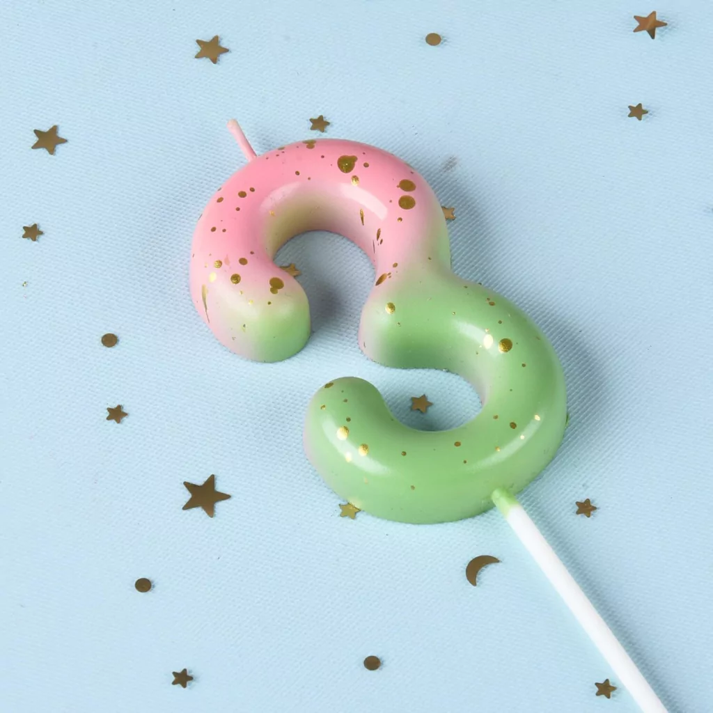 VELAS NÚMERO DEGRADÉ CON PINTITAS EN COLOR ORO. PACKAGING COLOR CRAFT NUEVO CON STAMPING DORADO. SE VENDEN POR 12 UNIDADES DEL MISMO NÚMERO. COLOR ÚNICO.