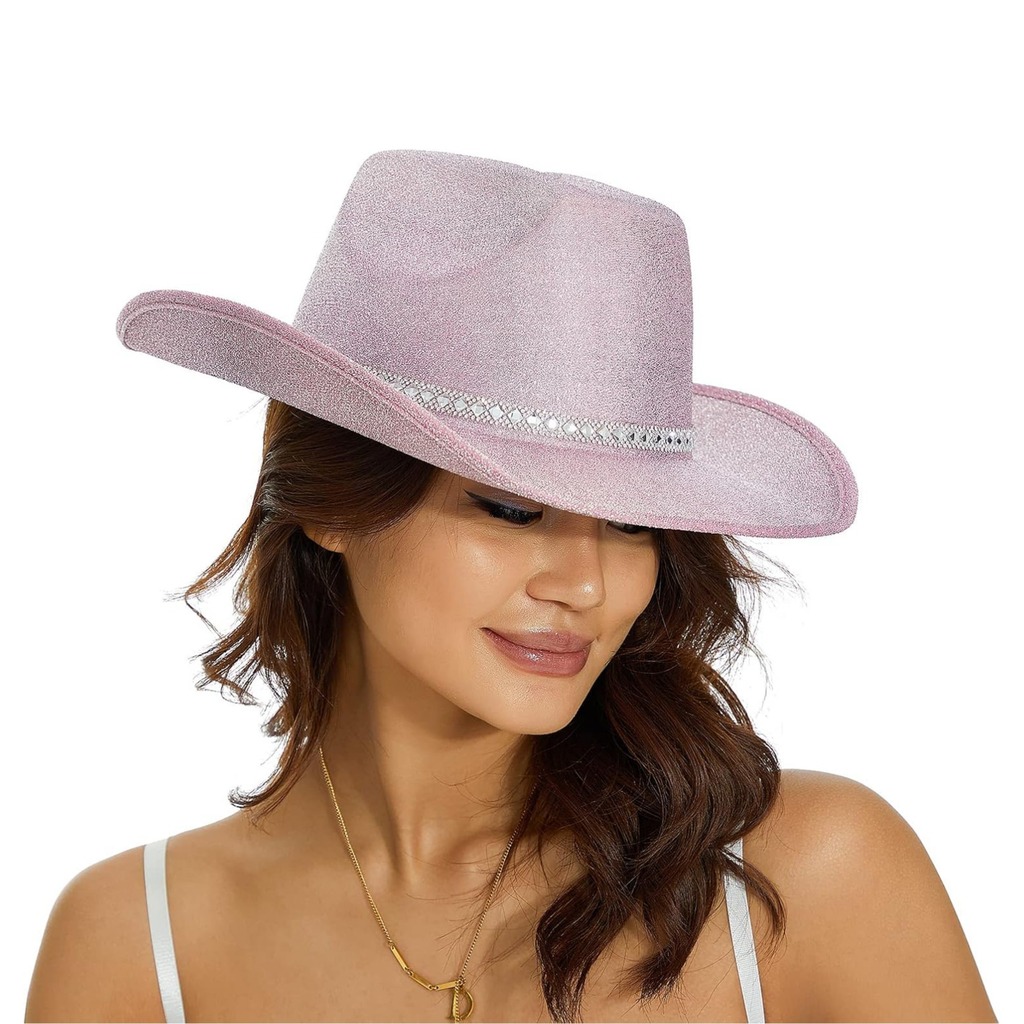 Dale brillo a tu despedida de soltera con este sombrero cowboy hecho de tela con glitter. Es el accesorio ideal para destacarte en la fiesta y sumar un toque divertido y glamoroso.