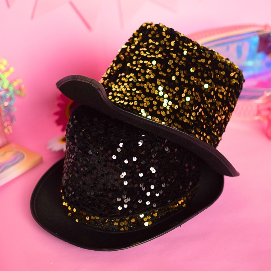 GALERA NEGRA RIGIDA CUBIERTA DE LENTEJUELAS COLOR ORO O NEGRO