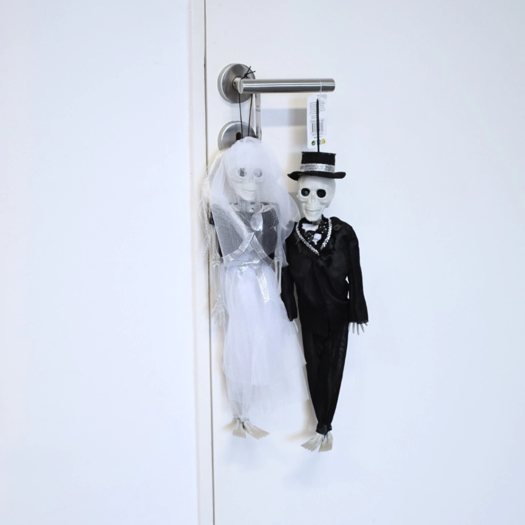 ¡Sumá humor y terror a tu vidriera! 🦴 El ADORNO COLGANTE "PAREJA DE ESQUELETOS" atrae miradas y clientes. Perfecto para decorar locales en Halloween y destacar tu negocio con un toque simpático y espeluznante.