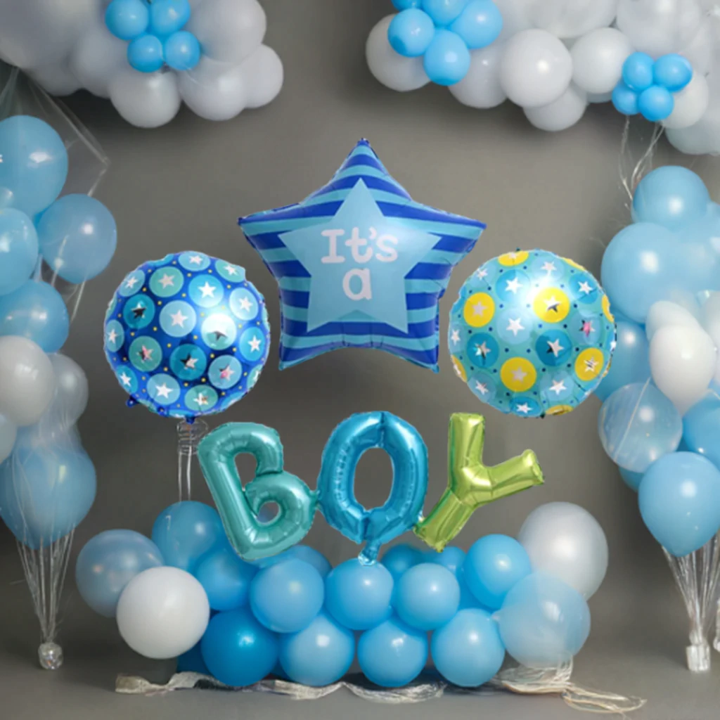Set de globos en tonos celeste ideal para baby shower y nacimiento. Incluye: