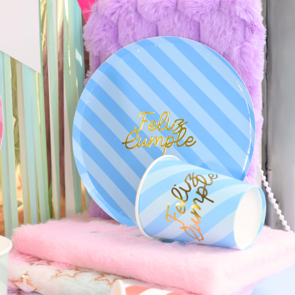 VASO "FELIZ CUMPLE" RAYAS COOL x10un.