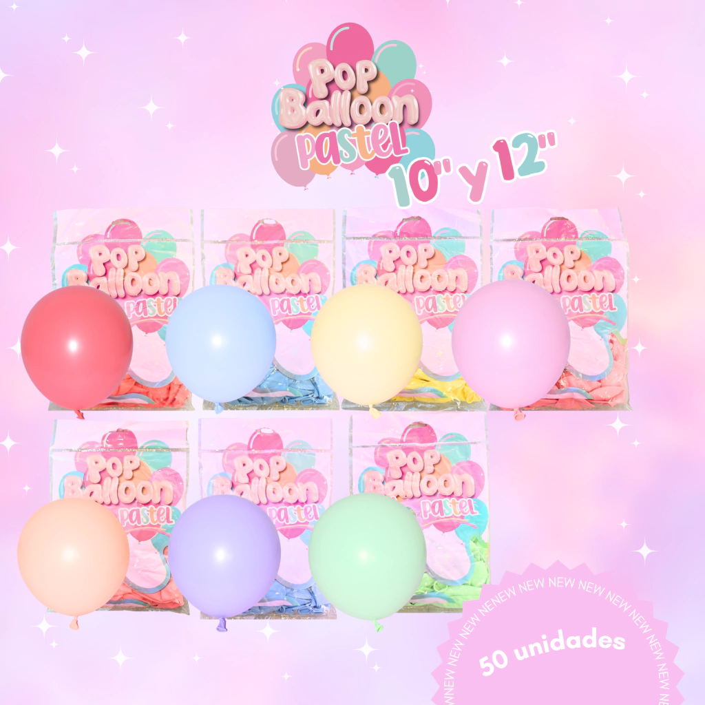 Globos POP BALLOON de 12” 🎈 Pack de 50 unidades de globos de látex color PASTEL para inflar con aire o helio. Perfectos para cumpleaños y decoraciones. 🎉 Calidad y colores vibrantes garantizados.